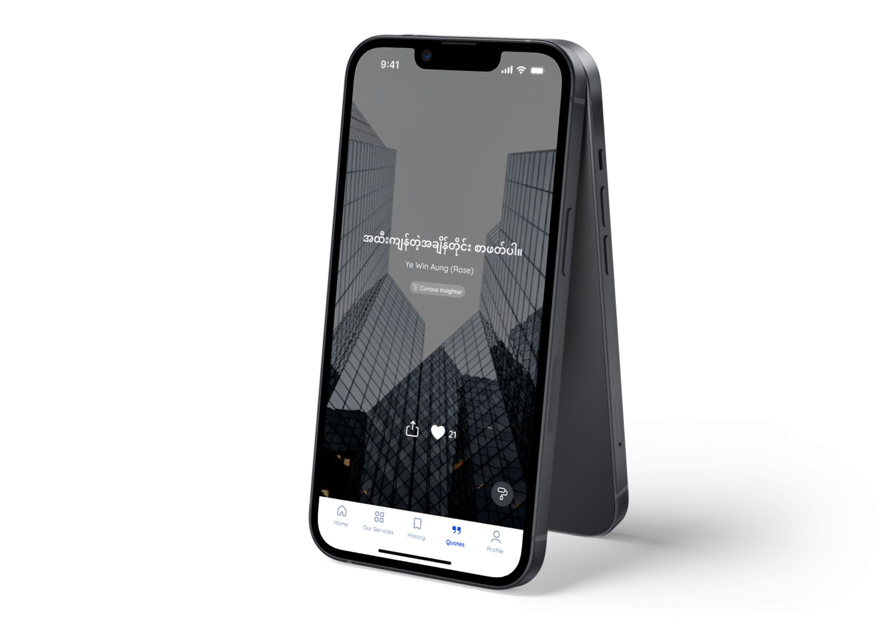 စိတ်ခွန်အားဖြည့် စာသားတွေကို Facebook Reels လိုမျိုး Swipe လုပ်ရင်း နေ့စဉ် အလွယ်တကူ ဖတ်ရှုမျှဝေနိုင်ပါတယ်။